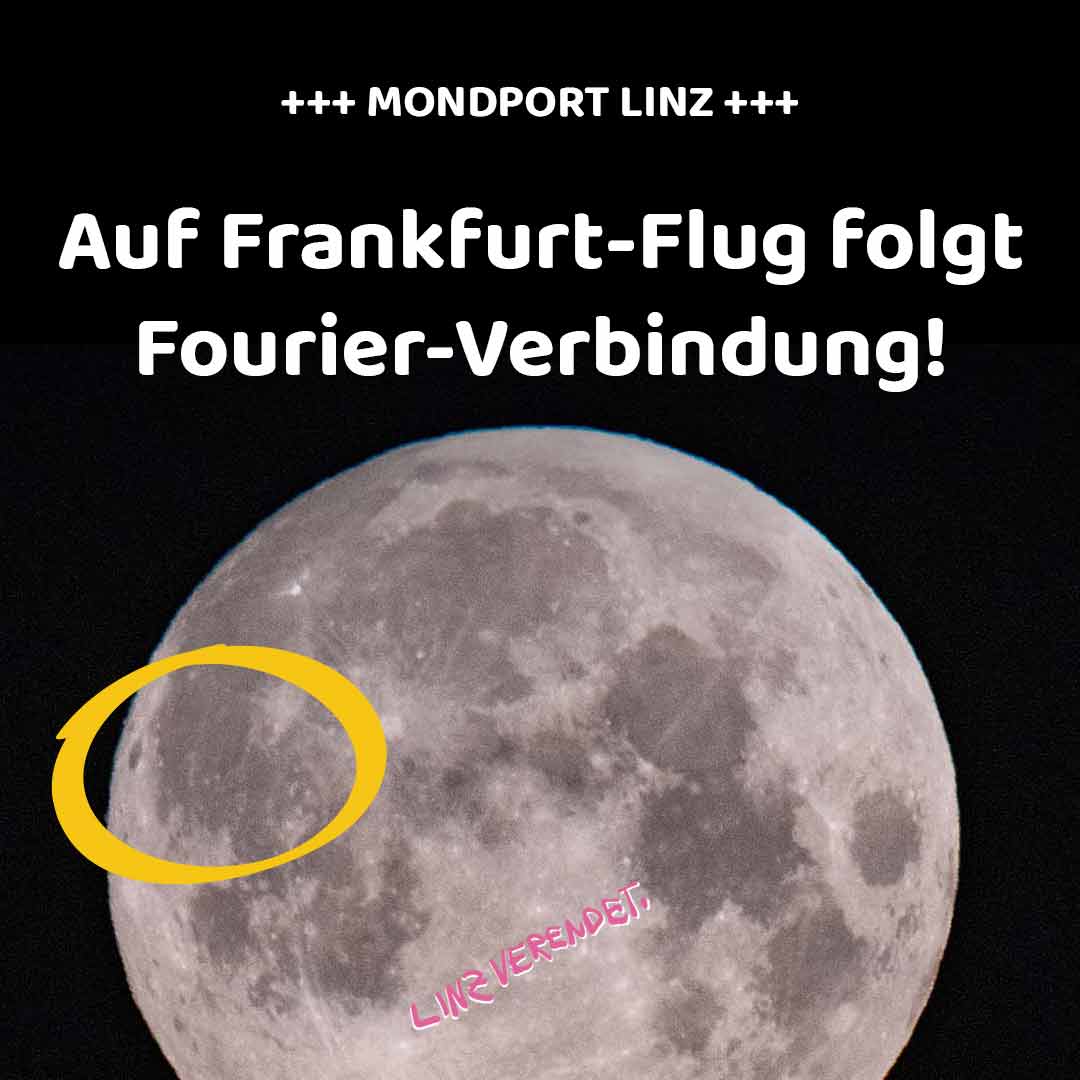 LINZ. Landesgranden planen großen Wurf! Euphorisiert von der 36-Millionen-Steuergeldspritze für den Propelerflug Linz – Frankfurt geht es nun Schlag auf Schlag. Die… 🌕 Mondport Linz: Auf Frankfurt-Flug folgt Fourier-Verbindung! weiterlesen